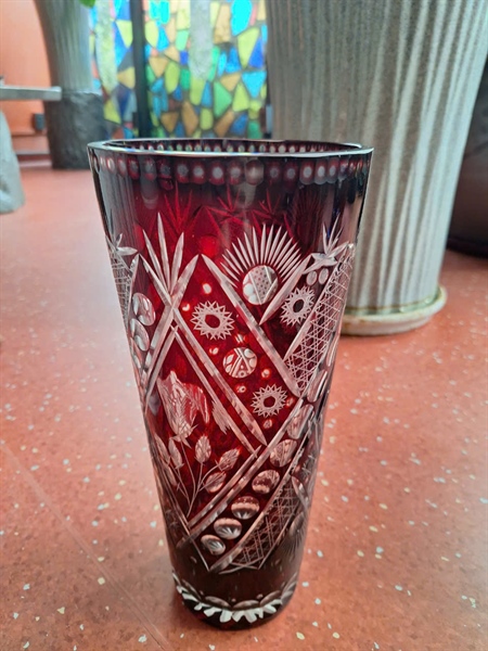 Đồ cổ bình pha lê đỏ +