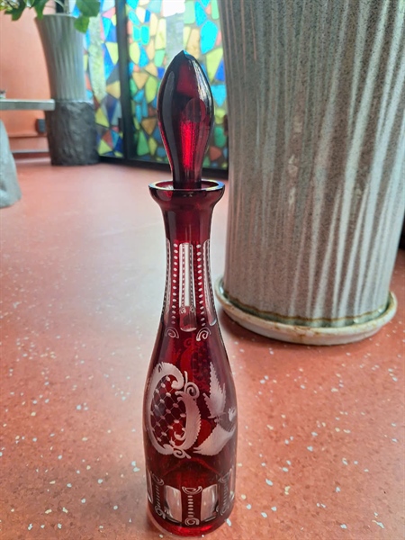 Đồ cổ bình pha lê màu đỏ có nắp +