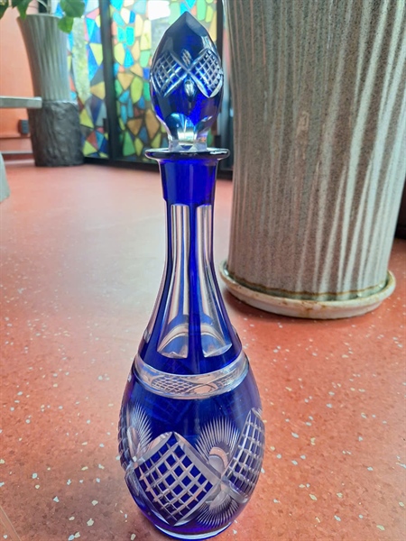 Đồ cổ bình pha lê xanh thân bầu có nắp +