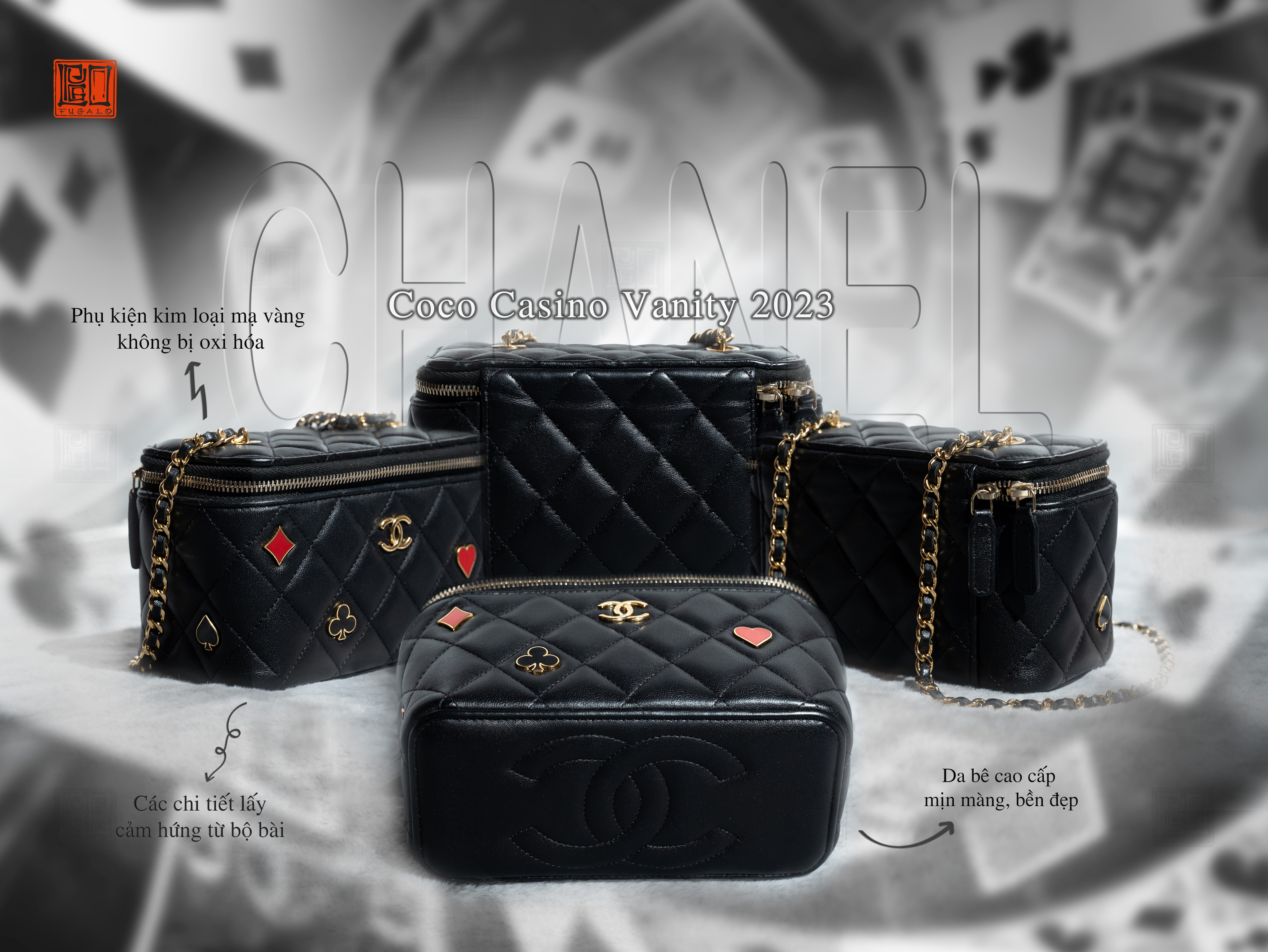 Chiếc túi Chanel 2023 Coco Casino Vanity nhỏ gọn, dễ cầm tay hoặc đeo vai. Chất liệu da mềm mại cao cấp bền đẹp, kết hợp logo và chi tiết kim loại mạ vàng bạc sang trọng. Họa tiết lấy cảm hứng từ không gian casino, toát lên sự tinh tế và cá tính riêng.
