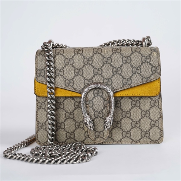 Túi GG Dionysus xám viền vàng (421970-498879) sz20 KG+