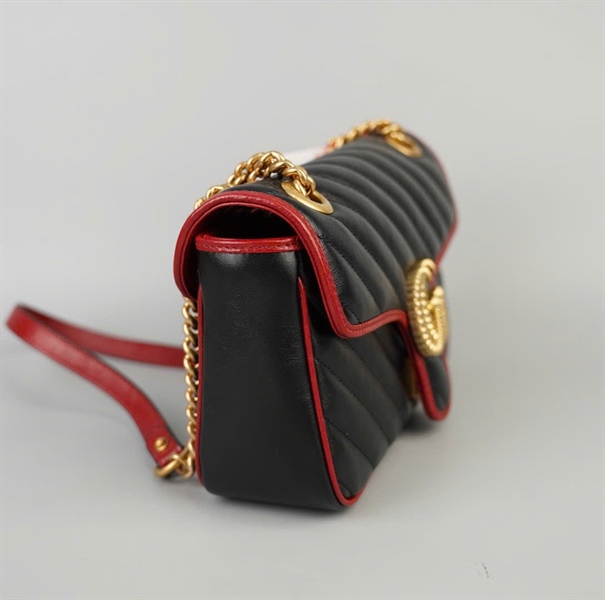 Túi GG Marmont đen viền đỏ (443497-525040) sz25 (BMC)+