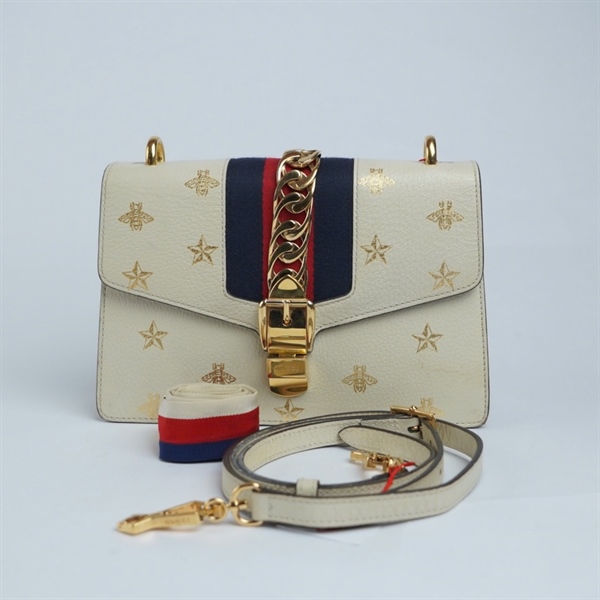 Túi GG Sylvie trắng 2 strap (524405-493075) sz25 (BQ) KG+