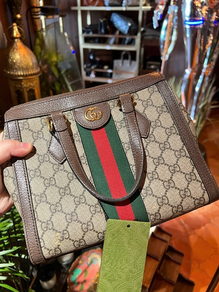Túi GG nâu hoa tiết logo phối dây màu size 22 TB+