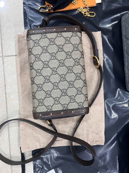 Túi GG Crossbody xám viền nâu sz18 (BQ) KG+