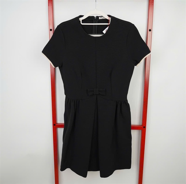 Váy Mimiu đen đính nơ tay viền trắng KG +